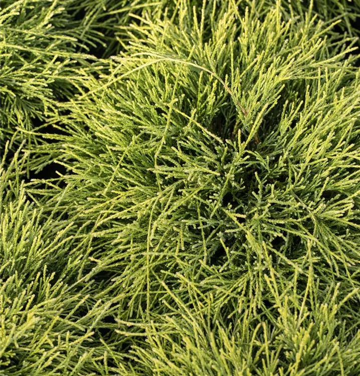 Sehr dekorativ. Die Grüne Fadenzypresse 'Filifera Nana' ist immergrün. Ihre Nadeln sind gelb-grün, weich.