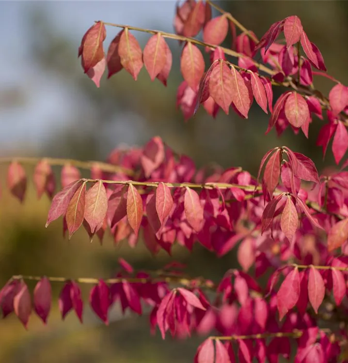 Besonders dekorativ sind die orange-roten Früchte von Euonymus alatus. Diese erscheinen ab Anfang September.