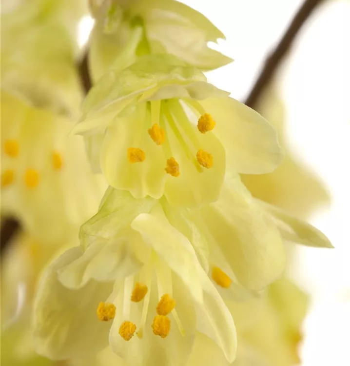 Die hellgelben, glockenförmigen Blüten erscheinen von März bis April.