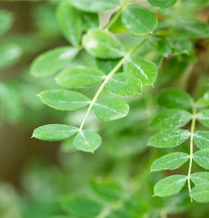 Die Blätter des Gewöhnlichen Erbsenstrauchs sind mittelgrün, wechselständig.