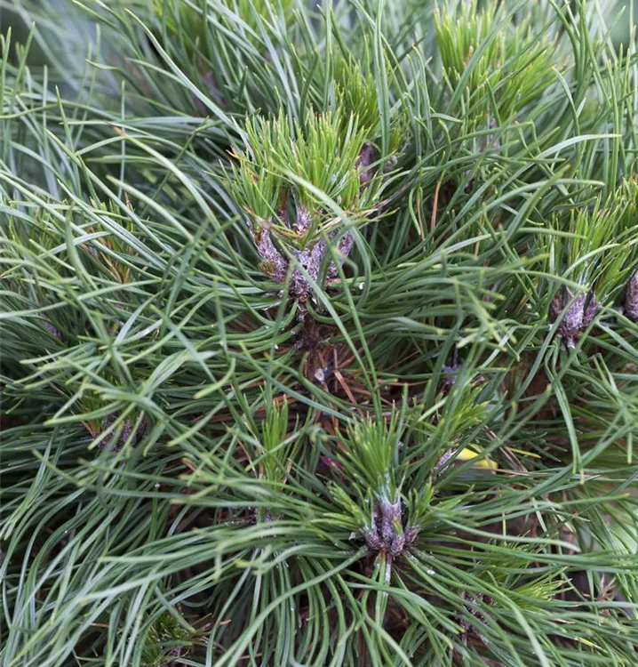 Die Berg-Kiefer 'Varella' ist immergrün. Ihre Nadeln sind blau-grün.