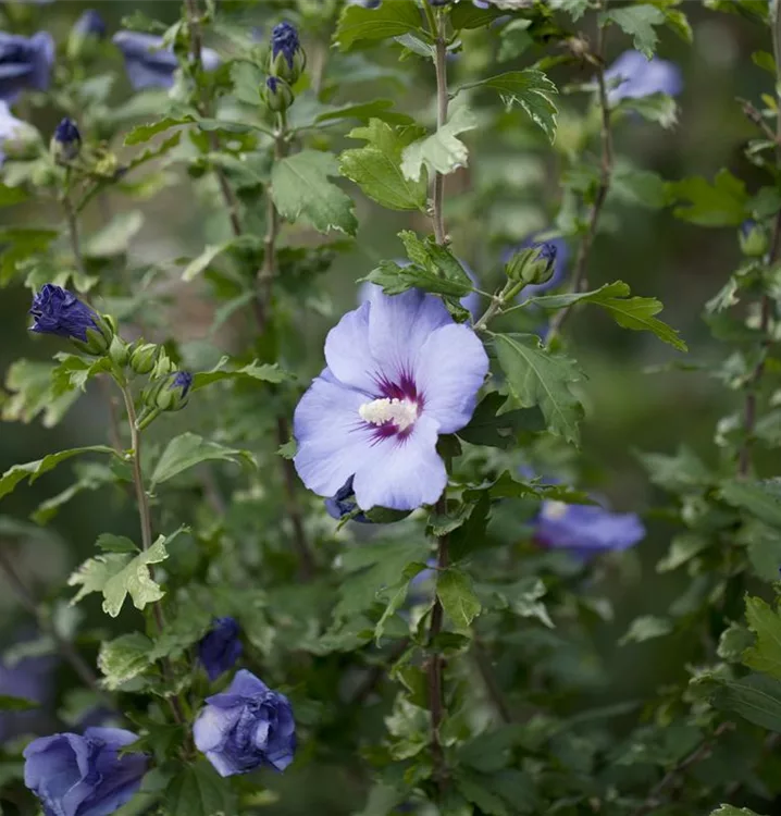 Der Garteneibisch 'Oiseau Bleu' weist eine gute Frosthärte auf.