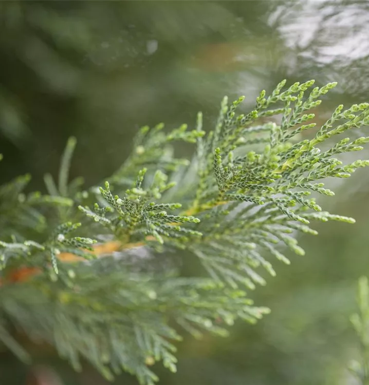 Die Leylandzypresse ist immergrün. Ihre Nadeln sind dunkelgrün, schuppenförmig.