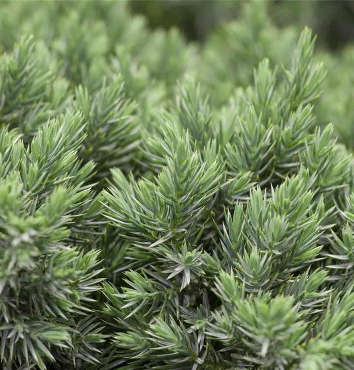 Der Blaue Zwerg-Wacholder 'Blue Star' ist immergrün. Seine Nadeln sind silberblau, stechend, schuppenförmig.