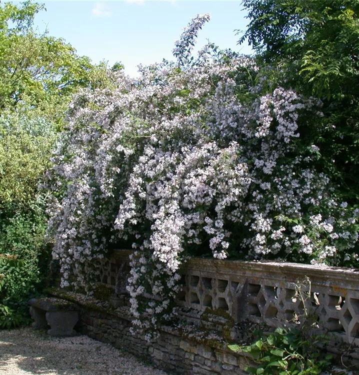 Perlmuttstrauch ist ein überhängend wachsender Strauch. Er erreicht gewöhnlich eine Höhe von 2 - 4 m und wird ca. 2 - 3 m breit. In der Regel wächst er 20 - 25 cm pro Jahr.