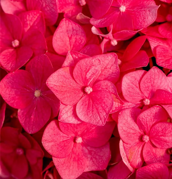 Die rosaroten, schalenförmigen Blüten der Bauernhortensie Endless Summer® 'Summer Love'® erscheinen in Dolden von Mai bis Oktober.