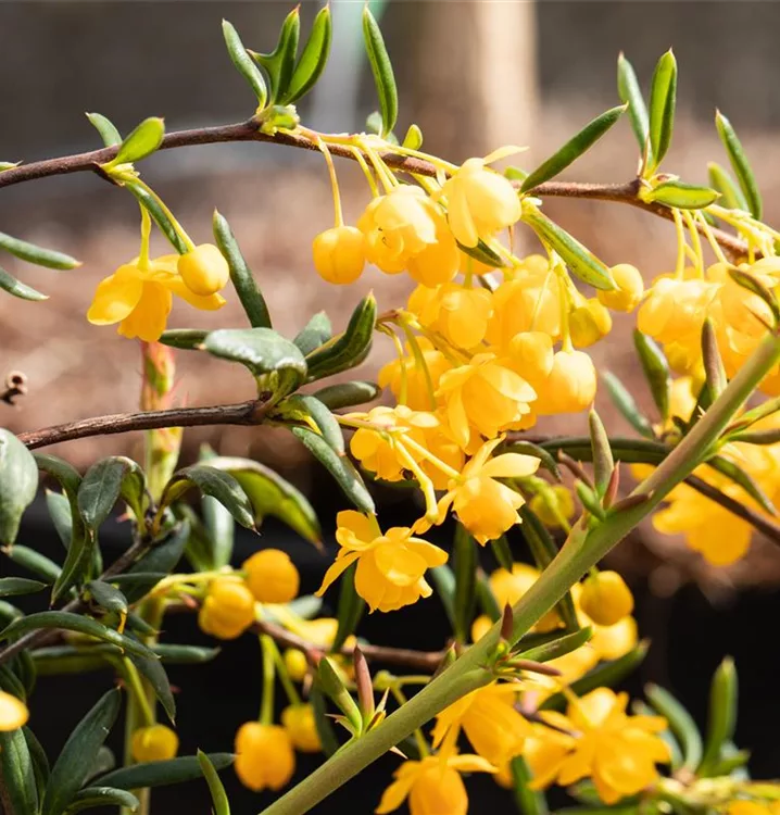 Die Triebe von Berberis x frikartii 'Amstelveen' sind bedornt, rot-braun.