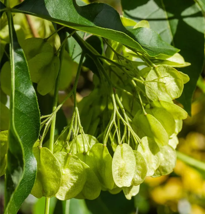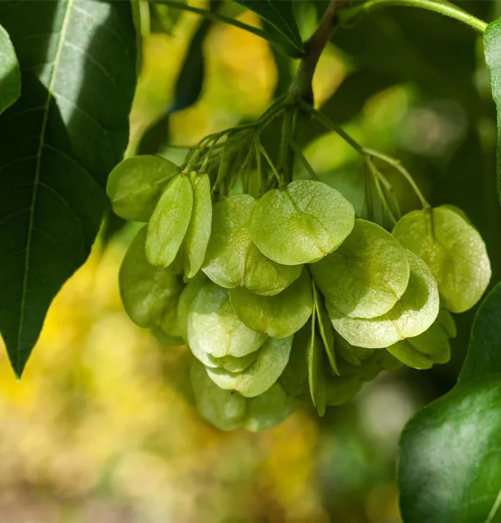 Besonders dekorativ sind die hellbraunen Früchte von Ptelea trifoliata. Diese erscheinen ab August. Haften sehr lange.