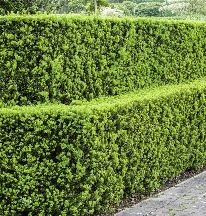 Die Heimische Eibe (Taxus baccata) ist ein Kleinbaum, welcher aufrecht wächst und gewöhnlich eine Höhe von ca. 15 m und eine Breite von ca. 10 m erreicht. Ihre nadelförmigen Blätter haben eine dunkelgrüne Färbung. Dekorative rote Zapfen zieren Taxus baccata ab September. Dieses Gehölz ist gut frostverträglich.Sie bevorzugt durchlässigen, kalkhaltigen, nährstoffreichen Boden in sonniger bis halbschattiger Lage.