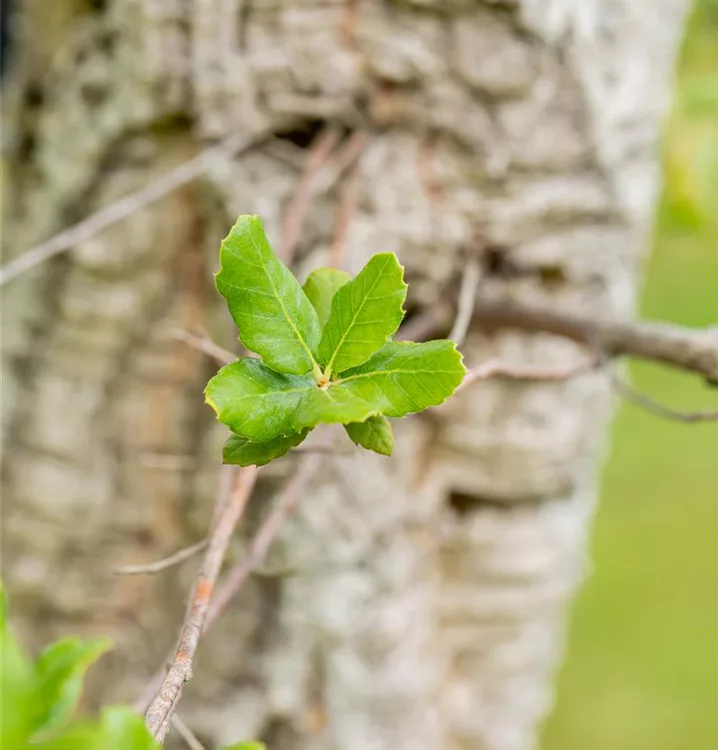 Die immergrünen Blätter der Kork-Eiche sind dunkelgrün, glänzend, eiförmig. Kork-Eiche zeigt sich leuchtend orangegelb im Herbst.