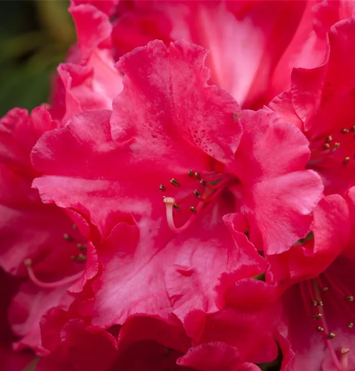 Die roten, trichterförmigen Blüten des Rhododendron 'Hachmann´s Feuerschein'® erscheinen in Dolden von Ende Mai bis Mitte Juni.