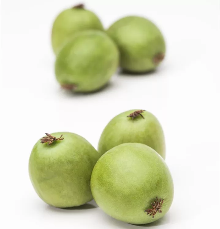 Die braunen, kleinen Beeren haben einen süss-säuerlichen, exotischen Geschmack. Das grüne Fruchtfleisch dieser ovalen Beeren ist weich. Reifezeit ab August.