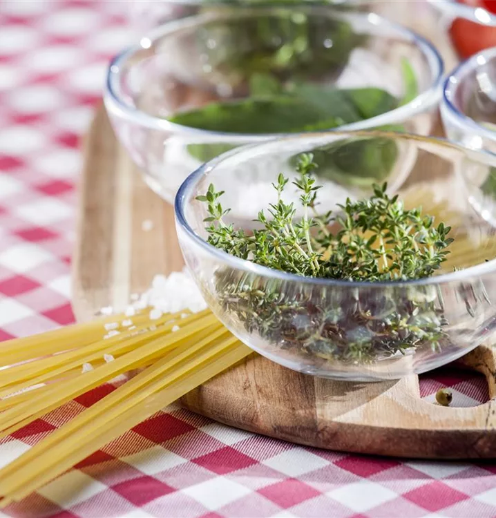 Der Echte Thymian (Thymus vulgaris) ist eine Kräuterpflanze mit einem aromatischen, würzigen Geschmack. Für das optimale Wachstum des Echten Thymians werden ein sonniger Standort und durchlässiger, nährstoffreicher Boden benötigt.