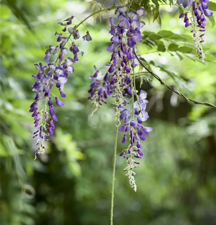 Japanischer Blauregen ist ein rankend, verzweigt wachsende Kletterpflanze, welche eine Höhe von 6 - 8 m und eine Breite von 4 - 6 m erreichen kann.