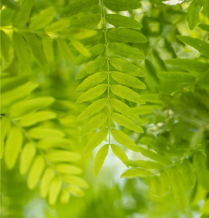 Der Lederhülsenbaum (Gleditsia triacanthos) ist ein schirmförmiger, malerischer Grossbaum mit dekorativen, rot-braunen Hülsenfrüchte, die sehr lange haften. Diese verströmen einen angenehmen Duft. Diesen voraus bringt er von Juni bis Juli hellgrüne, in Trauben angeordnete Blüten hervor. Zudem trägt der Lederhülsenbaum, gefiederte, hellgrüne Blätter. An einem sonnigen Standort erreicht er gewöhnlich eine Höhe von ca. 30 m und wird ca. 20 m breit. An den Boden stellt der Lederhülsenbaum keine besonderen Ansprüche.
