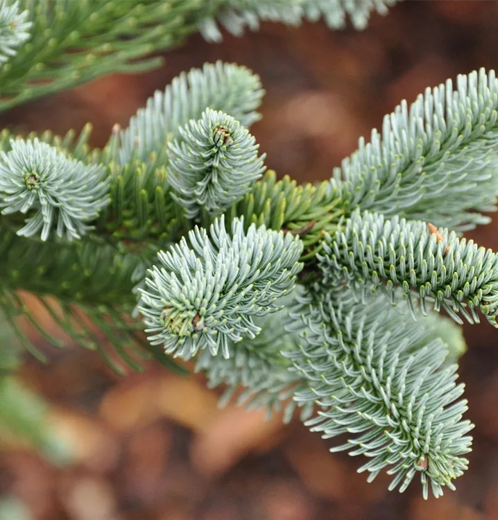 Die Edeltanne 'Bizarro' ist immergrün. Ihre Nadeln sind silberblau.