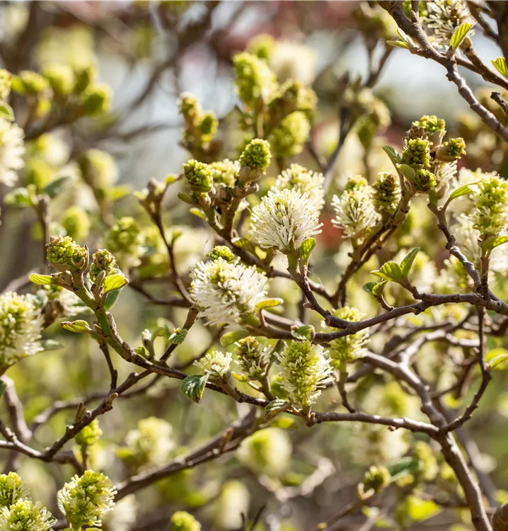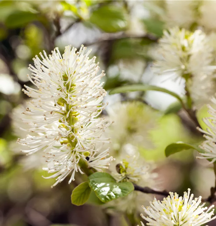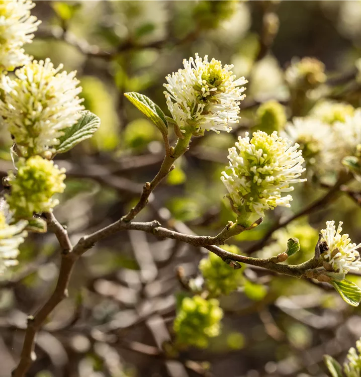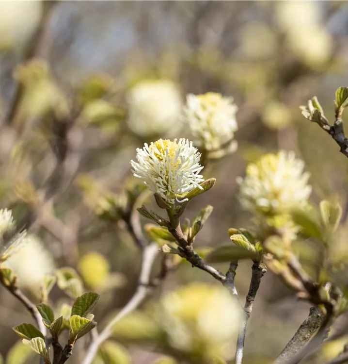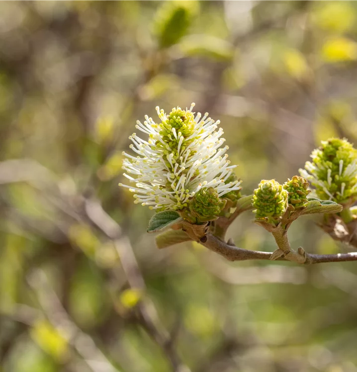 Fothergilla gardenii gedeiht auf allen sauren, humosen und genügend feuchten Böden.
