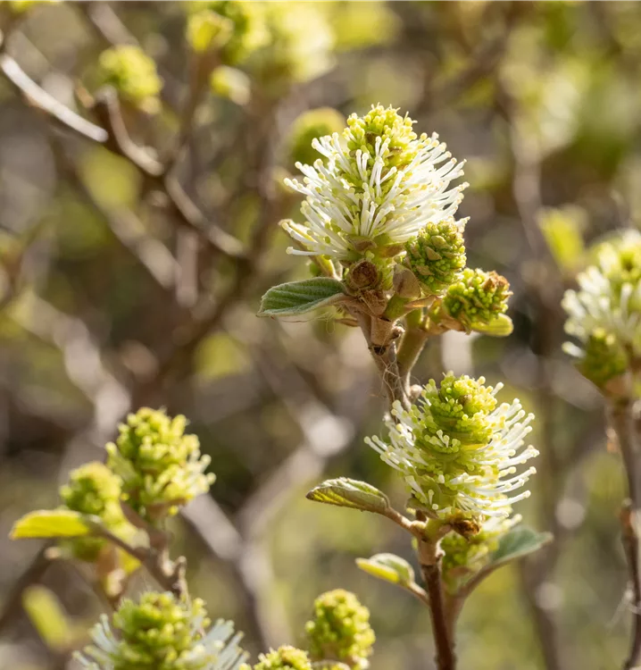 Fothergilla gardenii ist ein Herzwurzler und bildet, je nach Boden, fein verzweigte Wurzeln.