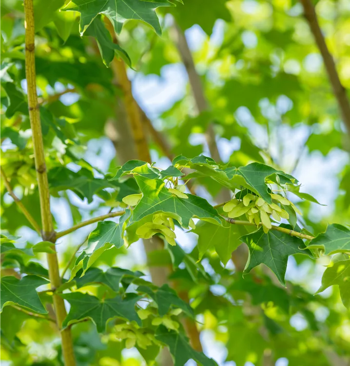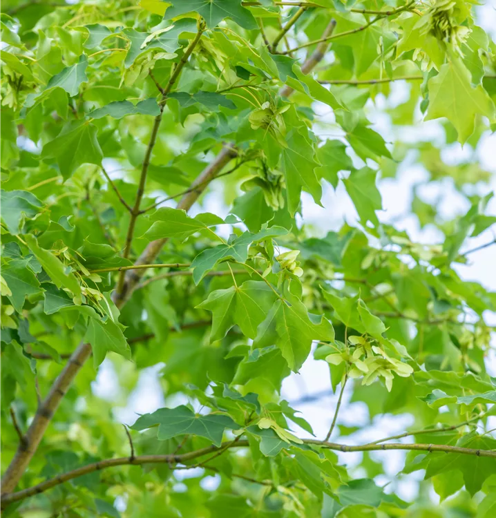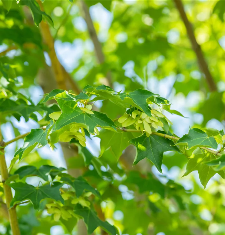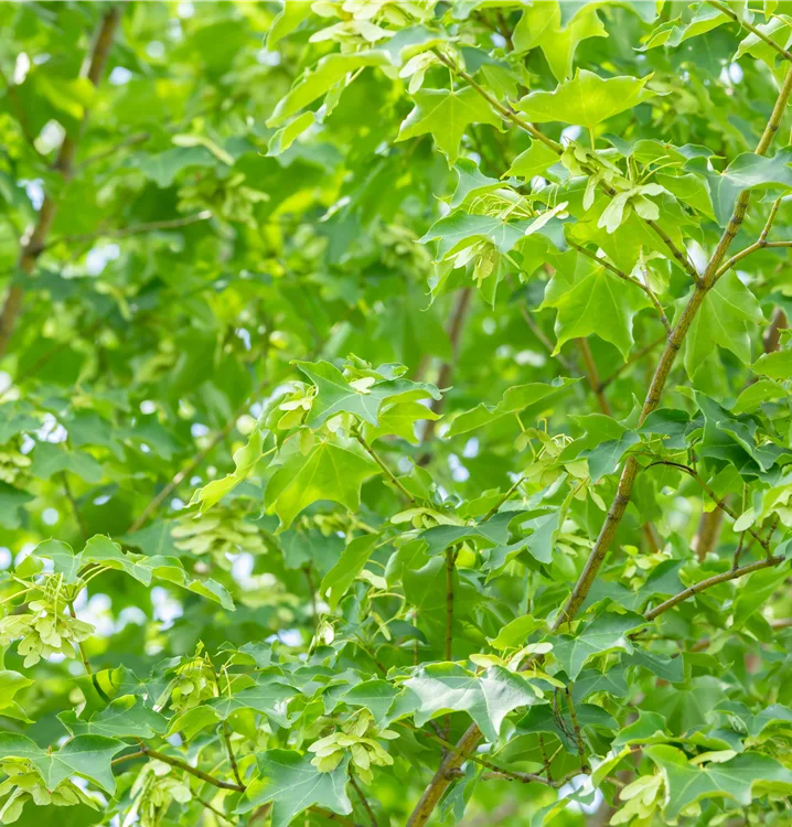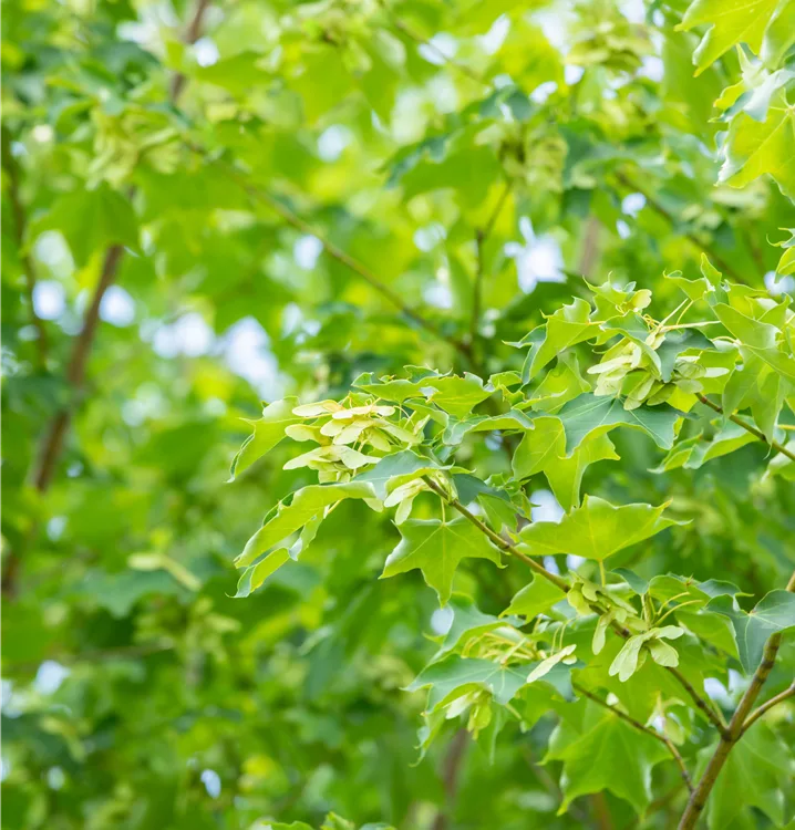 Der Rote Kolchische Ahorn 'Rubrum' (Acer cappadocicum) ist ein aufrechter Kleinbaum, der hellgelbe, in Rispen angeordnete Blüten hervorbringt. Sie erscheinen von Mai bis Juni. Aus diesen gehen hellgrüne Flügelfrüchte hervor. Zudem trägt der Rote Kolchische Ahorn 'Rubrum', dunkelgrüne Blätter. Der blutrote Austrieb ist ebenso ein interessanter Anblick. An einem sonnigen bis halbschattigen Standort mit durchlässigem, kalkhaltigem Boden erreicht er gewöhnlich eine Höhe von ca. 15 m und wird ca. 10 m breit.