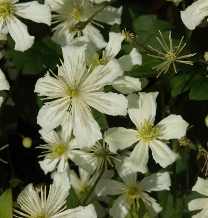 Die Immergrüne Waldrebe (Clematis armandii) ist eine immergrüne Pflanze, die weisse Blüten mit einem starken Duft hervorbringt. Sie erscheinen von März bis Mai. Zudem trägt die Immergrüne Waldrebe, glänzende, lanzettliche, grüne Blätter. An einem sonnigen bis halbschattigen Standort mit durchlässigem, humosem, lockerem Boden erreicht sie gewöhnlich eine Höhe von ca. 5 m und wird ca. 1 m breit.