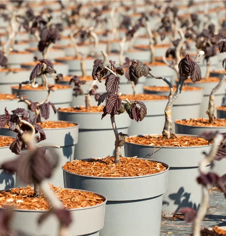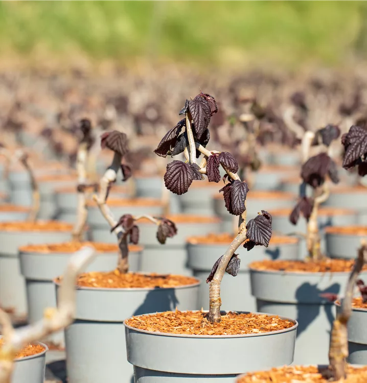 Corylus avellana 'Red Majestic' ist ein Flachwurzler und bildet, je nach Boden, ausladend verzweigte, fein verzweigte Wurzeln.
