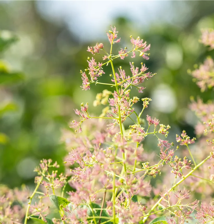 Die grüngelben Blüten des Perückenstrauch erscheinen in Rispen von Juni bis Juli. Diese werden etwa 15 - 20 cm gross.