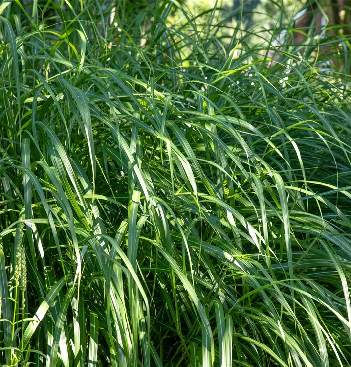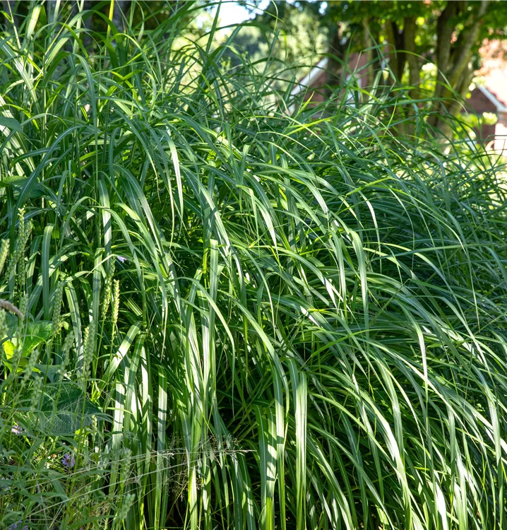 Das Garten-Chinaschilf 'Malepartus' (Miscanthus sinensis) ist mit seiner mittelgrünen Blattfärbung ein dekoratives Gestaltungselement im Garten, welches ebenso mit seinem ausladenden und horstbildenden Wuchs hervorsticht. Die silbrigen Blütenrispen schmücken diese Gras ab Herbst. An einem sonnigen bis halbschattigen Standort mit einem möglichst durchlässigen, humosen, nährstoffreichen Boden fühlt es sich am wohlsten. Bei günstigen Bedingungen erreicht dieses winterharte Gras eine Höhe von ca. 2 m und wird bis zu 1,5 m breit.