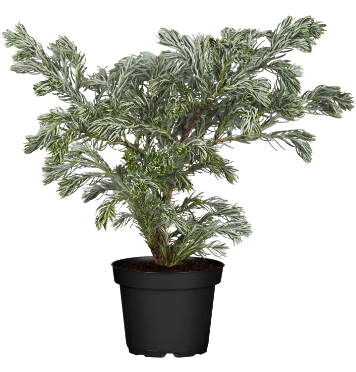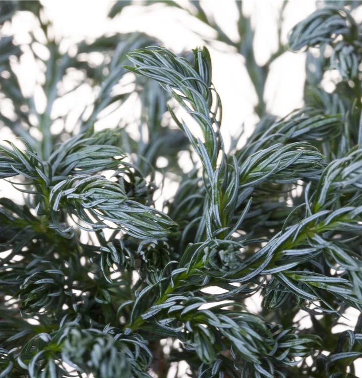Sehr dekorativ. Die Kleine Silberzypresse 'Boulevard' ist immergrün. Ihre Nadeln sind silberblau, weich. Mit seinem blau-grauen Laub setzt sie schöne Akzente im Winter.