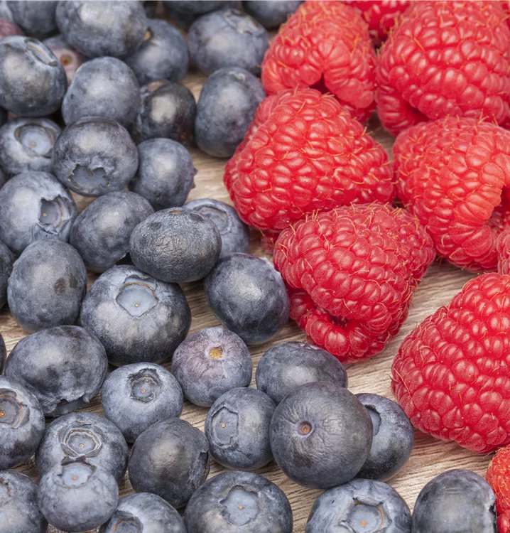 Die Blaubeere (Vaccinium myrtillus) bildet dunkelblaue Beeren. Diese sind süss-säuerlich, fruchtig im Geschmack. Für eine ertragreiche Ernte ab August schaffen humoser, lockerer, sandiger, saurer, schwachsaurer Boden und ein sonniger bis halbschattiger Standort optimale Bedingungen. Ihre grün-roten Blüten sind eine schöne Erscheinung.