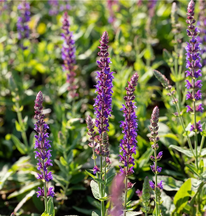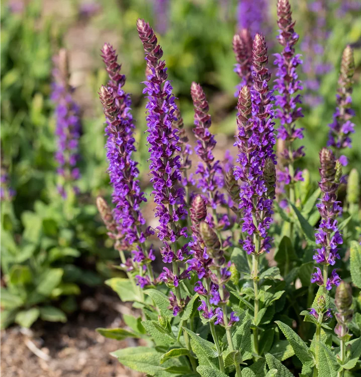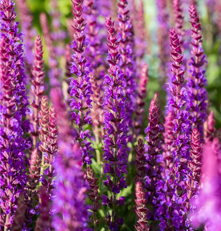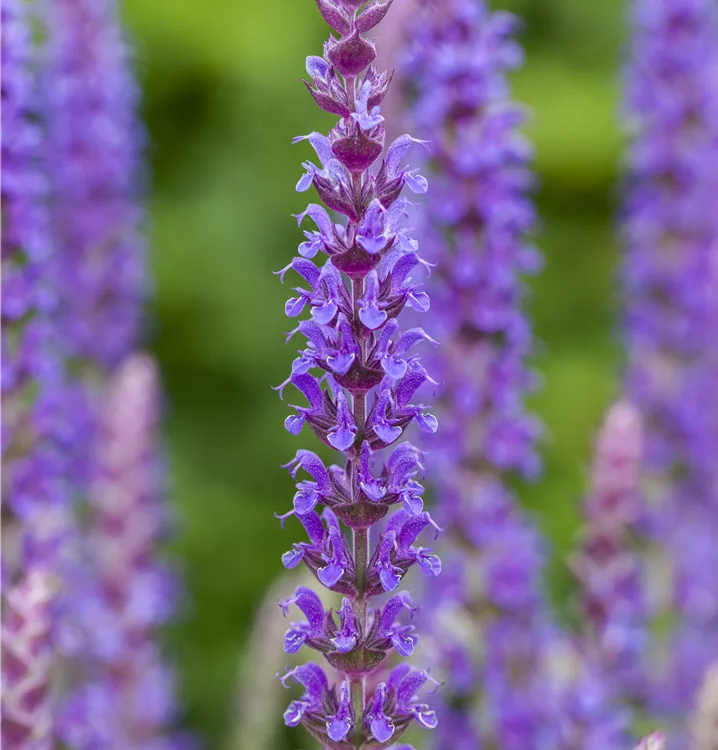 Salvia nemorosa 'Ostfriesland' bildet lippenförmige, in Rispen angeordnete, violette Blüten ab Juni. Diese werden etwa 5 - 10 cm gross. Bei richtiger Pflege Nachblüte im September.