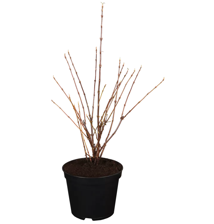 Die Triebe von Viburnum farreri 'Nanum' sind glatt, rot-braun.