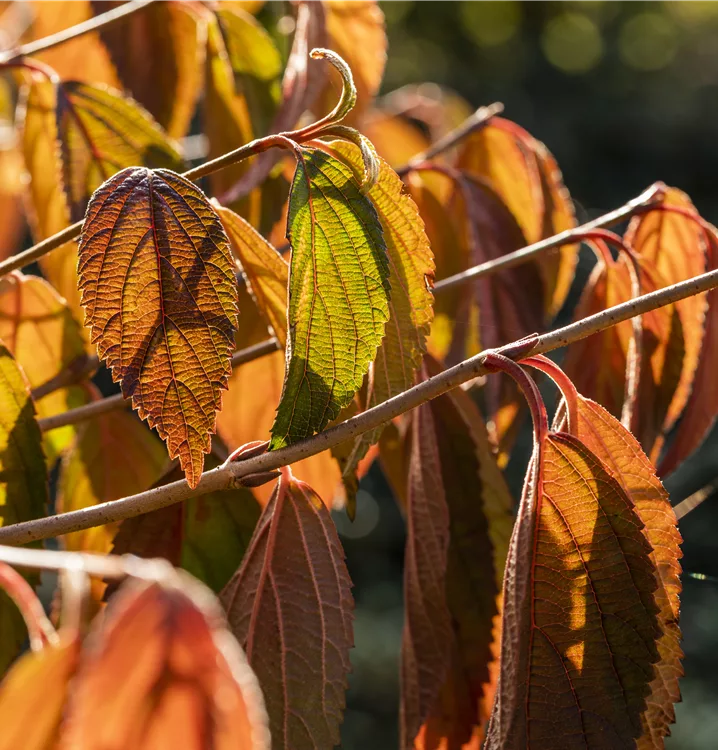 • attraktive bordeauxrote, purpurviolette Herbstfärbung