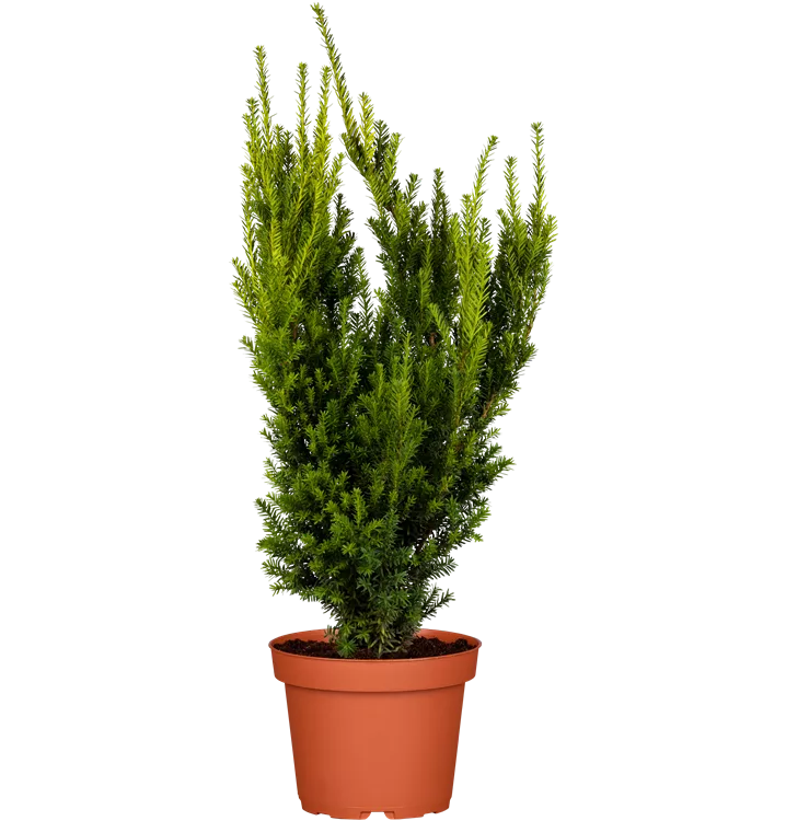 Die Spalier-Eibe 'Straight Hedge' (Taxus x media) ist ein Grossstrauch, welcher säulenförmig wächst und gewöhnlich eine Höhe von ca. 5 m und eine Breite von ca. 2 m erreicht. Ihre nadelförmigen Blätter haben eine dunkelgrüne Färbung. Dekorative rote Zapfen zieren Taxus x media 'Straight Hedge' ab September. Dieses Gehölz ist gut frostverträglich.Sie bevorzugt durchlässigen, nährstoffreichen Boden in sonniger bis halbschattiger Lage.