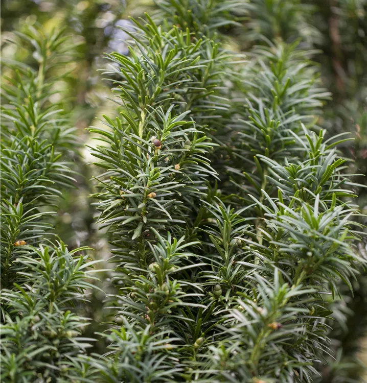 Besonders dekorativ sind die roten Zapfen von Taxus x media 'Straight Hedge'. Diese erscheinen ab September.