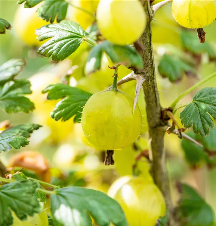Die Triebe von Ribes uva-crispa 'Invicta' sind bestachelt.