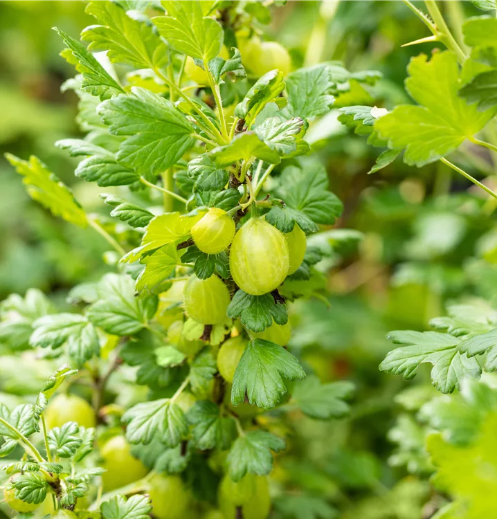 Die Stachelbeere 'Invicta' (Ribes uva-crispa) bildet hellgrüne, mittelgrosse Beeren. Süss-säuerlich im Geschmack, ist die Stachelbeere 'Invicta' fest und besitzt eine kaum behaarte Schale. Für eine ertragreiche Ernte ab Mitte Juli schaffen durchlässiger, lockerer, nährstoffreicher Boden und ein sonniger bis halbschattiger Standort optimale Bedingungen. Ihre weissen Blüten sind eine schöne Erscheinung.