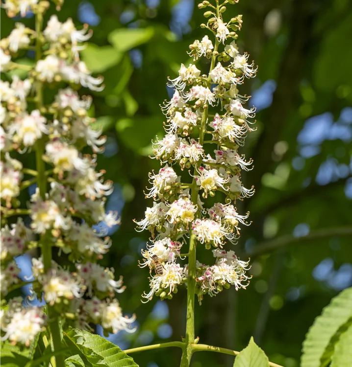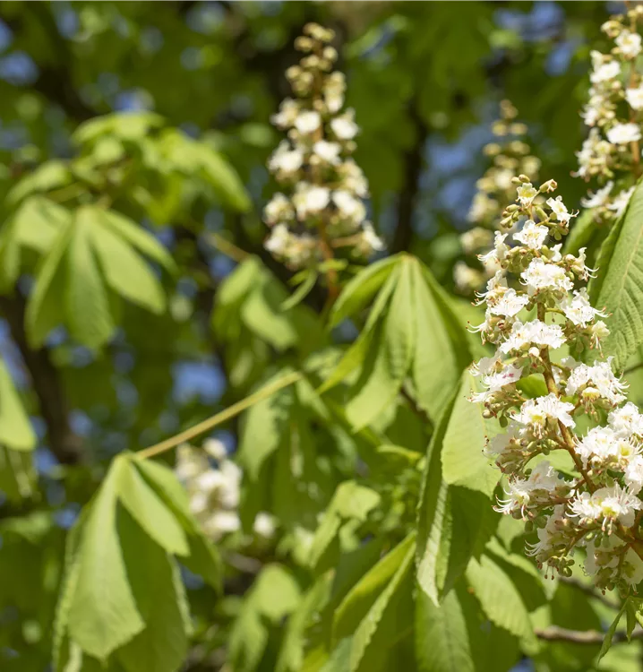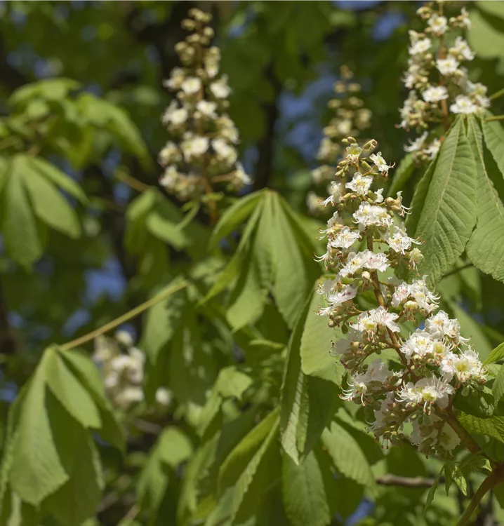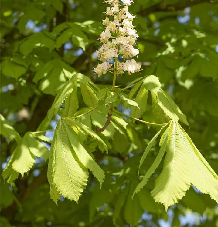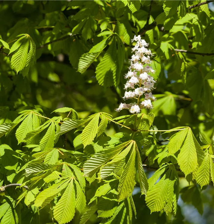 Die weissen Blüten der Rosskastanie erscheinen in Rispen im Mai.