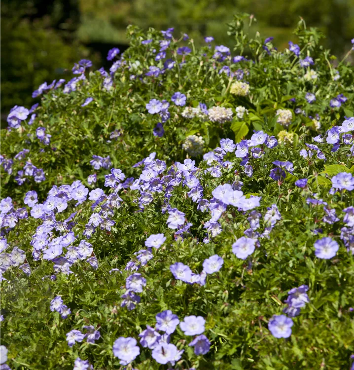 Geranium wallichianum 'Rozanne'® bildet blaue Blüten ab Juni.