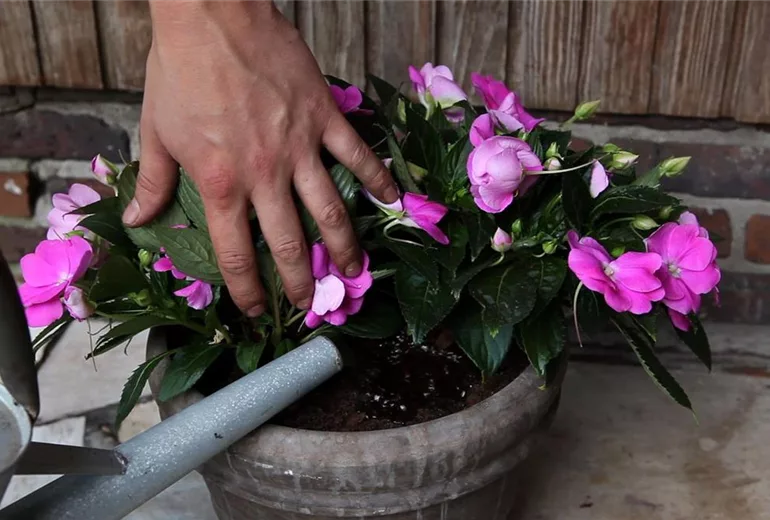 Nach dem Umpflanzen sollten Sie Ihren Edellieschen-Topf vorsichtig aber gründlich wässern.