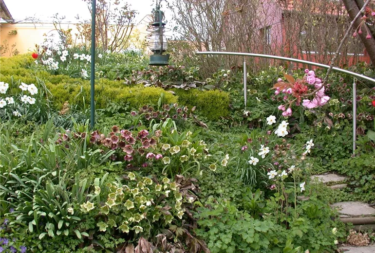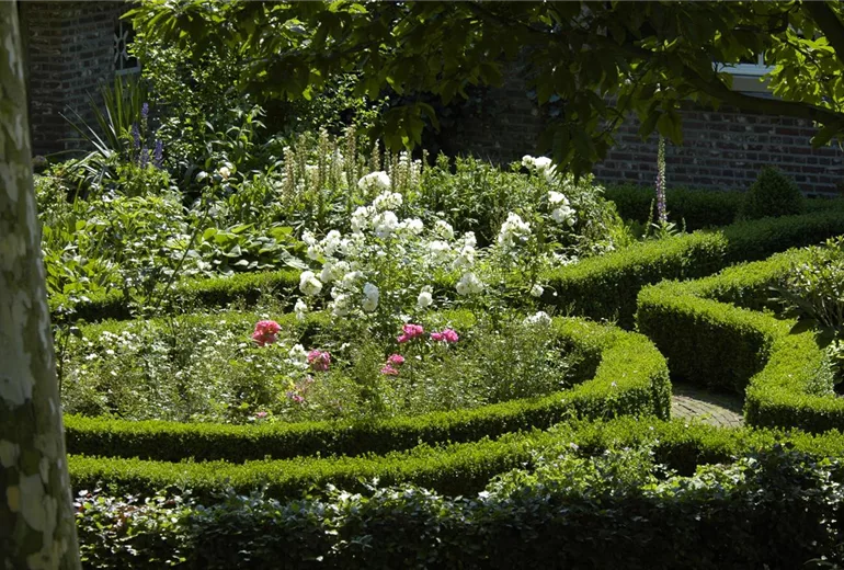Zusätzliche Akzente schaffen Sie durch Beeteinfassungen, Rankhilfen und Dekoelemente aus natürlichen Materialien wie Holzzäunchen, Weidenranken, Buchs und Hecken. Hauptsache üppig, lautet einer der Wahlsprüche für den Cottage Garden.